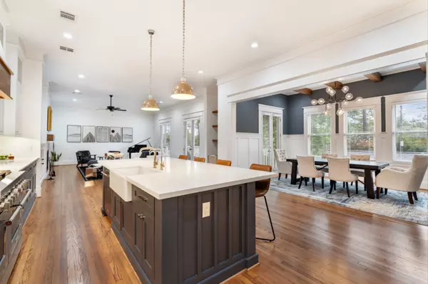 Southern bungalow charm meets modern elegance in this expansive 5-bed, 5-bath Timbergrove Manor home. Set on a tree lined street, this 2021 build welcomes you with a wide front porch shaded by a sprawling old live oak. Inside, you’ll find 5 private bedrooms each with it's own ensuite, a game room, a refined home office with a custom bookshelf and rolling ladder, plus a bonus media room - space for every season of life. The chef’s kitchen boasts a Calacatta quartz island, walk-in butler’s pantry with wine fridge, and opens to the living and dining areas. Upstairs, the vaulted-ceiling primary suite offers a cozy sitting area and spa-like bath. Nearly 4,620 sq ft of living space, with rich oak flooring and a large backyard, make this home a true blank canvas. Located near the White Oak Bayou Trail, with access to the best restaurants, parks, and activities, while still offering that quiet neighborhood feel.